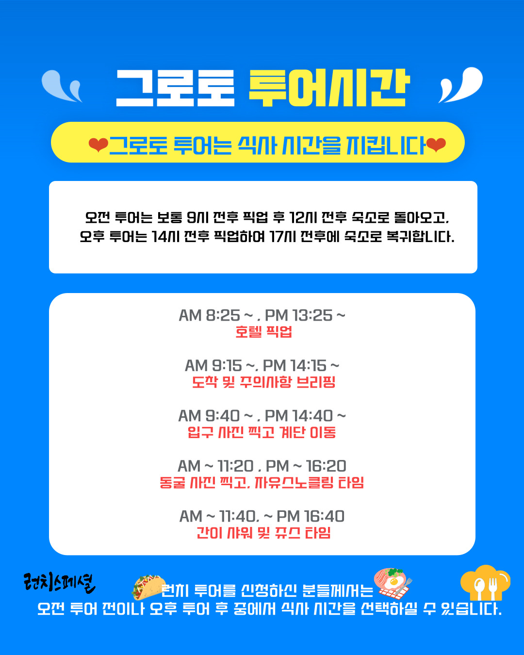 런치투어는 월~토 가능/일요일 불가