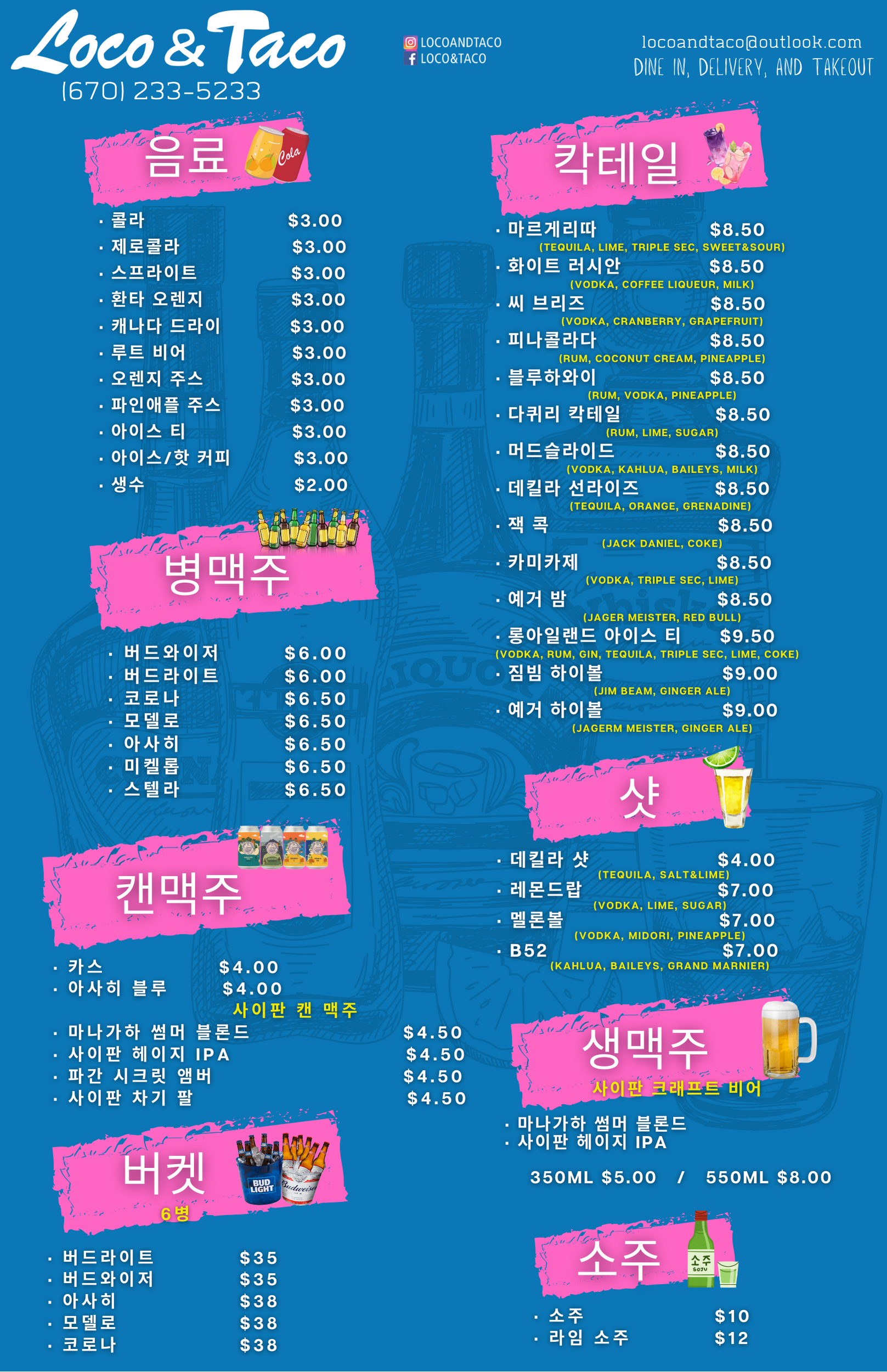 -> 일반 식사메뉴 인당 $20(음료+음식/자유롭게 선택가능)