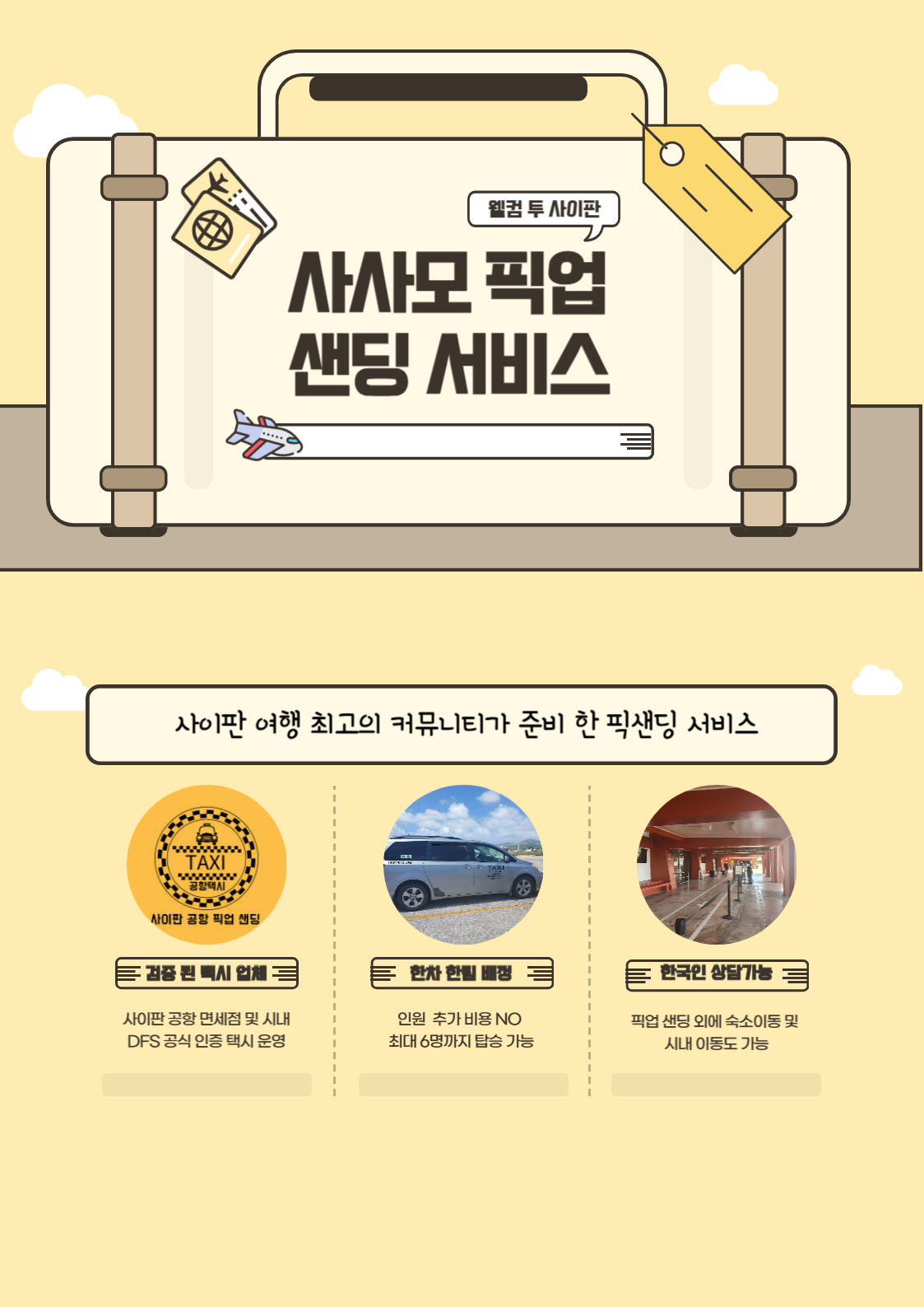 사이판 여행 마무리 안전한 단독 공항 샌딩 사사모와 함께(단독차량) !