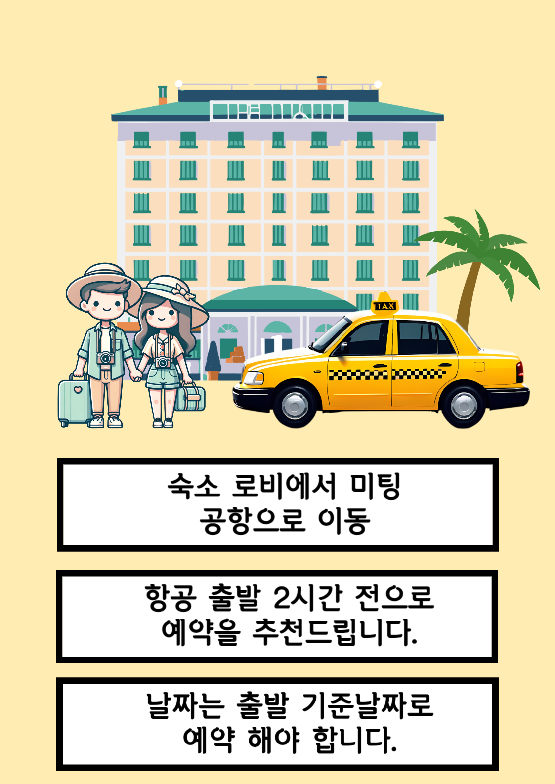 - 총 25여대의 택시가 있는 조합 택시 입니다. 세단 택시와 밴 택시가 있어서 한번에 120여명의 손님 공항 픽업과 샌딩이 가능 합니다. 사실상 비행기 전체 손님 택시로다 픽업 해드릴수 있습니다.