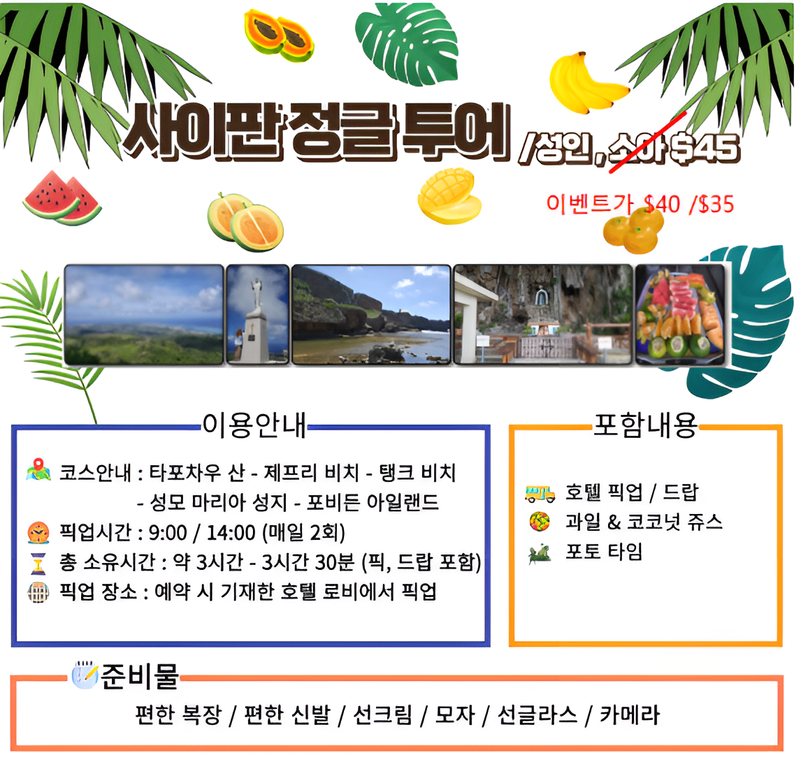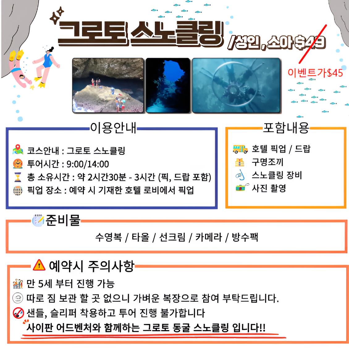 그로토 성인 40불 + 5불 ( 당일 환경세는 직접 지출) - 사이판 어드벤쳐