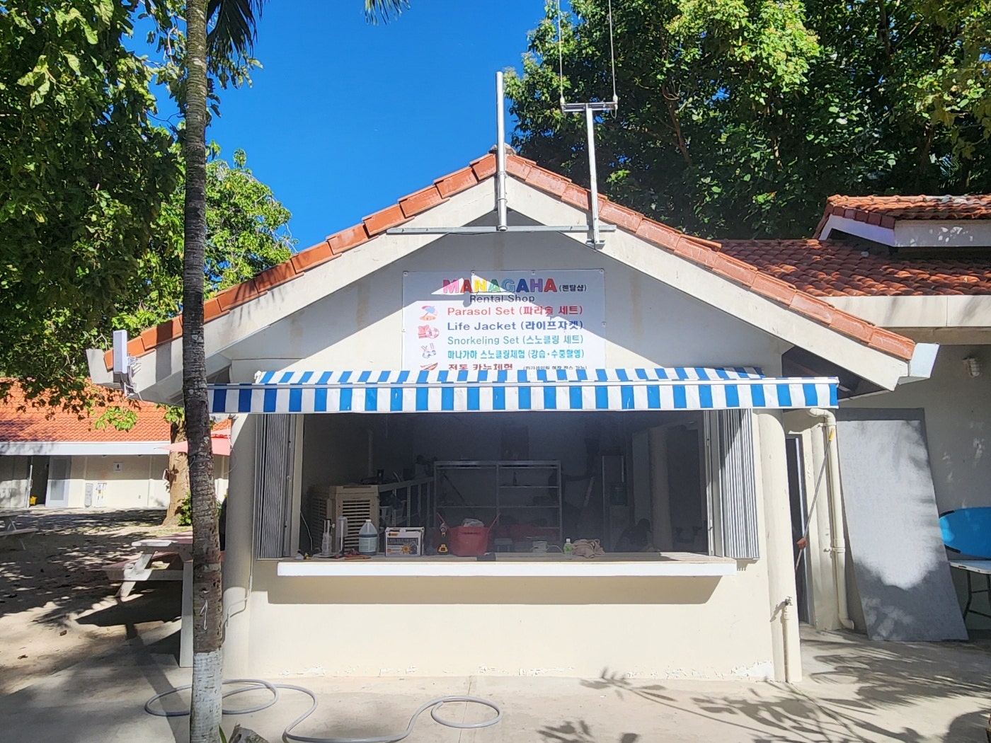 마나가하섬 비치에 배정 된 파라솔 대여입니다.