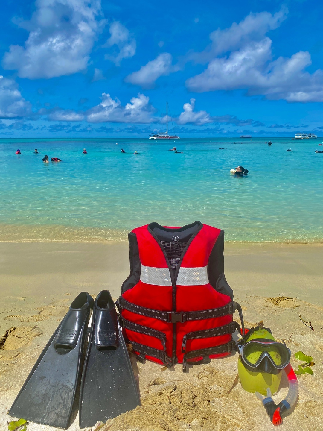 구명조끼는 사이판에서 출발하는 배 타시기 전에 받는 겁니다