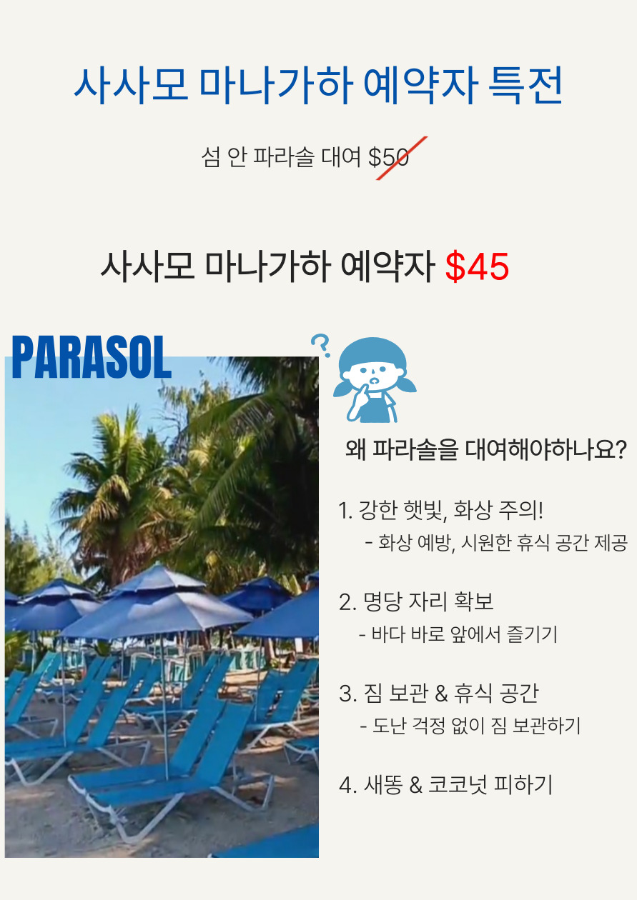섬 안에서 대여 시 $50인데 사사모 특가 세일