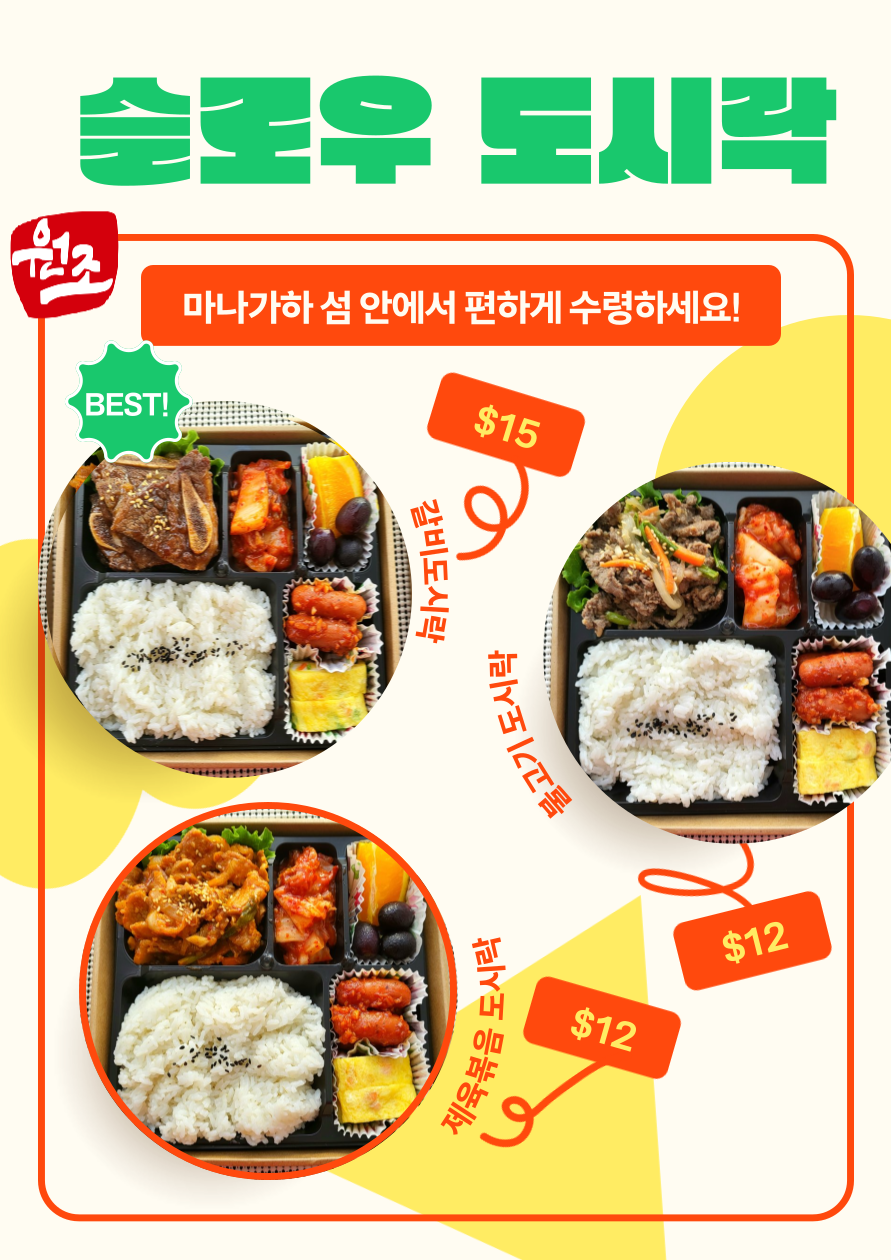 도시락 수령은 사이판에서 배타기전에 도시락 업체가 무료 배달 해드립니다.