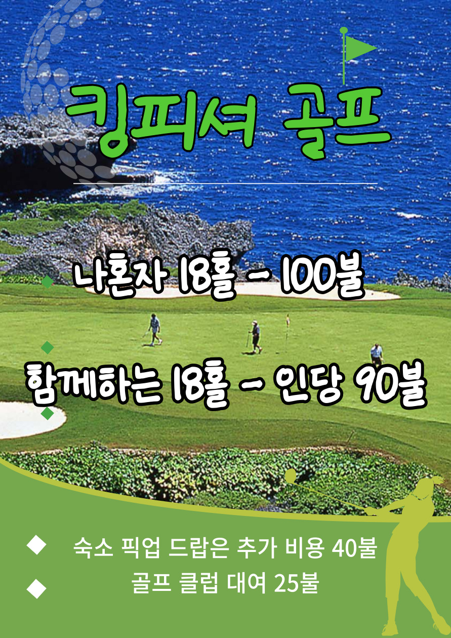 **사이판을 사랑하는 모임(사사모)**은 킹피셔 골프장의 공식 계약사입니다.