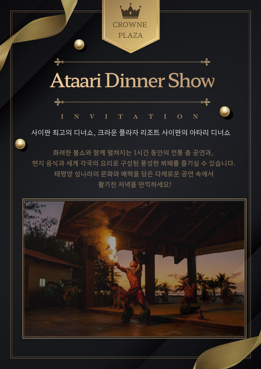 🔥 전설의 매력이 가득한 아타리 디너쇼 크라운 플라자 리조트 사이판의 또 다른 자랑거리는 바로 아타리 디너쇼입니다!